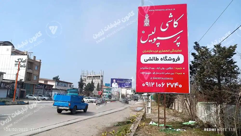 جهت اجاره تابلو تبلیغاتی کنار جاده ای، روبه روی املاک طاها قبل از بلوار کرکاس واقع در عباس آباد،درابعاد 3 در 5.5 متر به صفحه ثبت آنلاین مراجعه کنید .