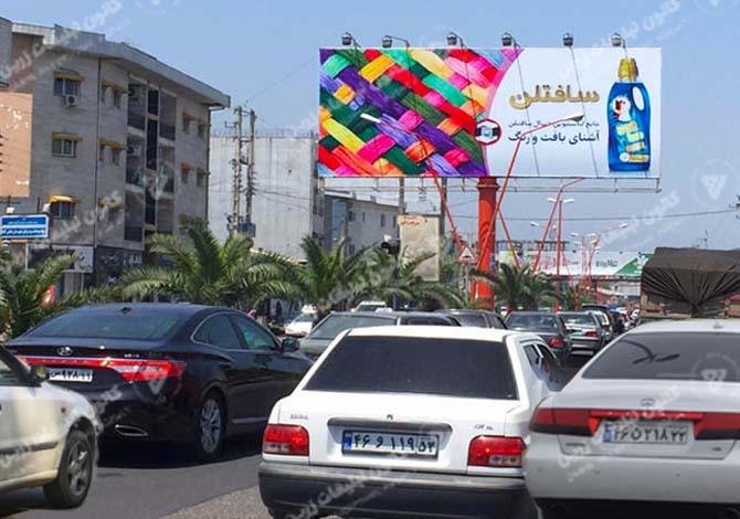 ابعاد این بیلبورد تبلیغاتی بین بلواری برابر با 60 مترمربع می باشد و به صورت افقی در جاده عباس آباد، بعد از شهرداری شماره 1 قرار گرفته است.