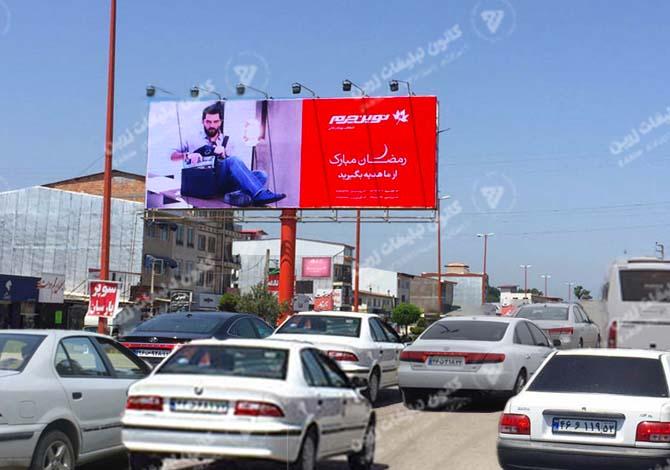 جهت رزرو و اجاره بیلبوردهای تبلیغاتی درشریان اصلی شهرعباس آباد با ما تماس بگیرید این بیلبورد تبلیغاتی واقع در محور عباس آباد، با بهترین موقعیت مکانی و دید مناسب، در ایام تعطیلات بیشترین تعداد تردد ترافیکی در پیک های تعطیلات را دارد. طراحی و اجرای کمپین موفق نوین چرم در عباس آباد. برای معرفی خدمات و محصولات خودتان در استان توریستی و گردشگری مازندران با کانون تبلیغاتی زرین ارتباط بر قرار کنید رضا زرین مشاور امور تبلیغاتی شما، شما میتوانید برای اجرای تبلیغات خود با رضا زرین ارتباط برقرار کنید. طراحی وچاپ و نصب بیلبورد مازندران در کمتراز 1هفته اجرا میشود.یک سال ساختن صد سال ماندن نتیجه کار با ما است. رضا زرین مجری انحصاری در عباس آباد.