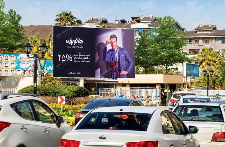 تبلیغات محیطی نقش به سزایی در دیده شدن برند تبلیغاتی شما دارد. برای بسیاری از کسب و کارها تبلیغات بیلبوردی یک فرصت بسیار مناسب است تا سریع تر به اهداف تبلیغاتی خود برسند. تبلیغات در شمال کشور همیشه مورد استقبال صاحبان کسب و کار بوده است. بیلبورد تبلیغاتی که مشاهده می کنید در ابعاد 4 متر در 7 متر و مساحت 28 مترمربع قرار گرفته است. این بیلبورد در شهر رشت، بلوار گیلان و میدان تربیت معلم واقع شده و توسط کانون تبلیغات زرین اجاره داده می شود. زمان نصب و اجرا این بیلبورد گیلان در کمتر از 4 روز انجام می شود. جهت اجاره این بیلبورد می توانید با پشتیبانی سایت بیلورد زرین تماس بگیرید. رضا زرین مجری و مشاور تبلیغاتی در سراسر کشور و به ویژه در شمال است. در صورتی که بخواهید از سایر تابلوهای تبلیغاتی در شهرهای مختلف گیلان و مازندران مطلع شوید می توانید صفحه اجاره بیلبورد گیلان و اجاره بیلبورد مازندران را مشاهده کنید